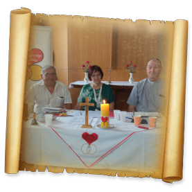 Meghitt, meleg légkörű megosztások után a találkozót közös, családjainkért és a Házas Hétvégés Közösségért modott rózsafűzér imával és Dávid atyától kapott áldással fejeztük be, majd rövid ideig még kötetlenül beszélgettünk.