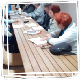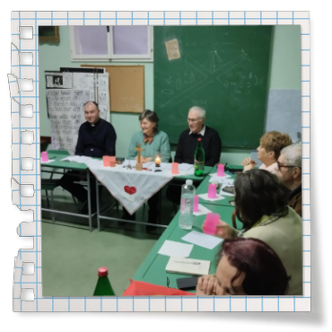 Meghitt, meleg légkörű megosztások után a találkozót közös, családjainkért és a Házas Hétvégés Közösségért modott rózsafűzér imával és Dávid atyától kapott áldással fejeztük be, majd rövid ideig még kötetlenül beszélgettünk.
