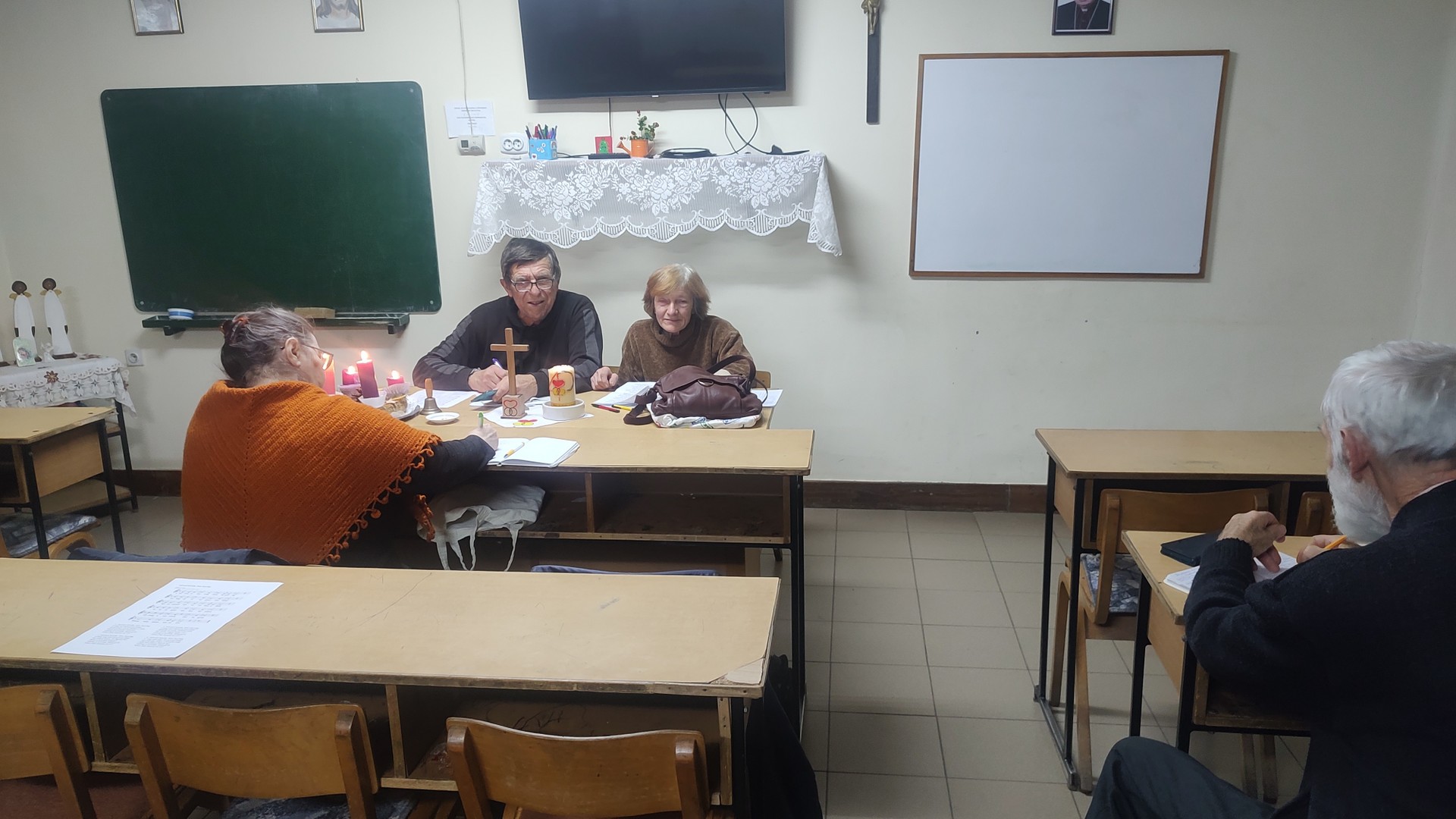 október 27.én Dávid atyával megtartottuk havi találkozónkat. Nagy örömünkre eljöttek Bogarasról a Kalmár házaspár is. Mindig örülünk, ha valakik tőlük is el tudnak jutni, hiszen ők is egyre kevesebben vannak, így nagyon jó a kapcsolódás egymáshoz. Valamint online velünk volt Nagy Jóska atya is! A dialógus kérdést most Jóska atya adta. - Mit kellene magamban megváltoztatni? Mit vállalok fel, hogy megváltoztassam? HÉM? A megosztások és David atya áldása után szerény agapé mellett folytatódott a beszélgetés! Következő találkozót december 1.én 19.30.ra terveztük. Szeretettel várunk másokat is!